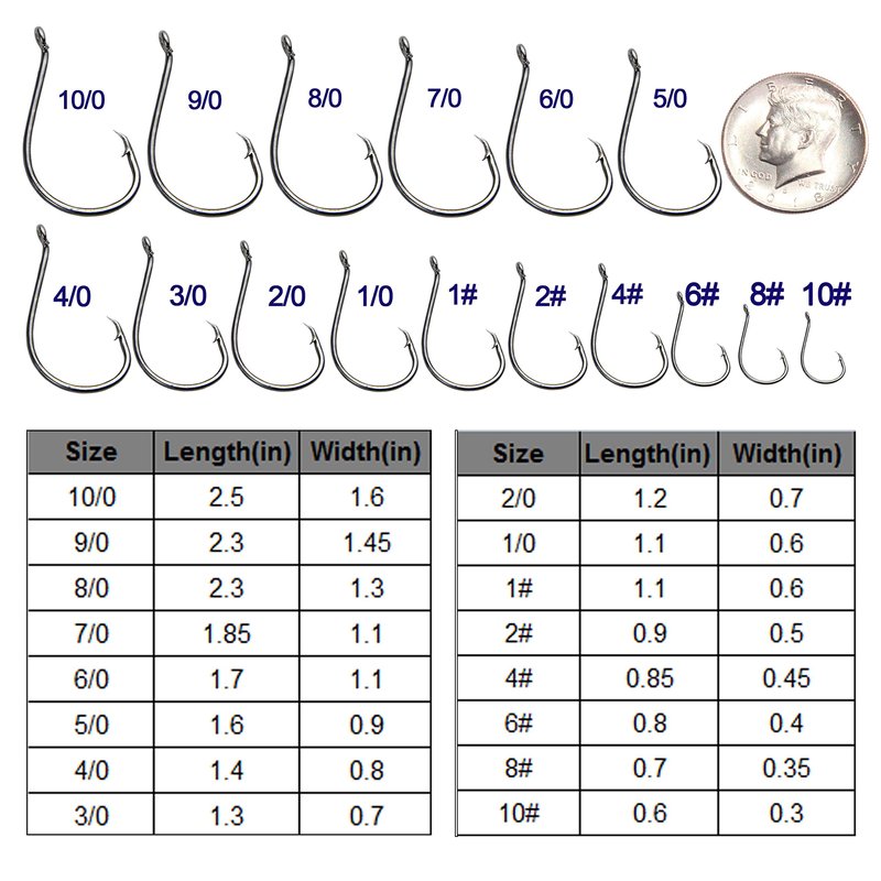 - Package Included:100pcs/lot, size #1, 1/0, 2/0, 3/0, 4/0, 5/0 ,6/0,7/0,8/0,9/0,10/0.200pcs/lot,size 2#,4#,6#,8#,10# in a bag