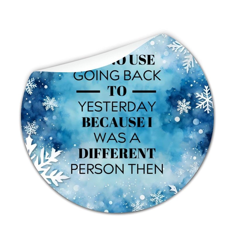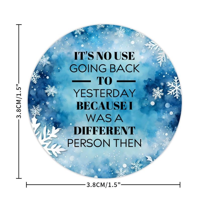 100pcs Circle Decals,It's No Use Going Back to Yesterday Because I was A Different Person Then Labels Stickers with Quotes for Laptop Envelope Seals Jar Water Bottles Goodie Bags Packaging 1.5in