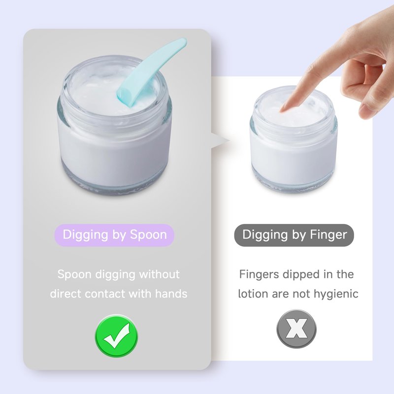 - AVOID USING FINGERS-This makeup spatula can take right amount cosmetic out from your jars easily, effectively reduce waste and confusion. Without having your fingers to touch and maintain your cosmetics cleanliness!