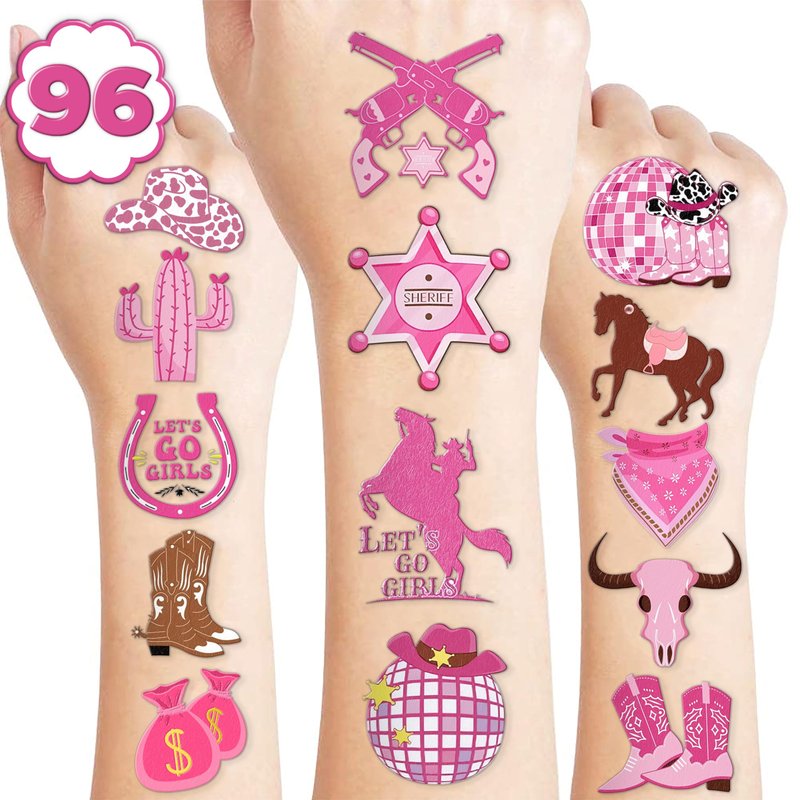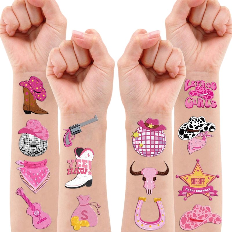 - Widely used: These Disco Cowgirl Pink Western Horse Rodeo Preppy Y2K Temporary Tattoos pieces are suitable for many occasions such as birthday parties, baby showers, birthday gifts, party decorations, gatherings and other special celebrations. It also can be applied on laptop, cup, luggage, phone case and so on which could make you look more impressive.