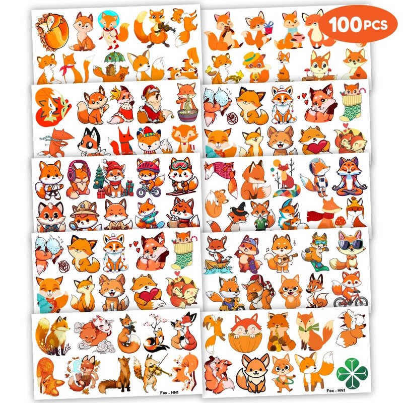 100PCS Fox Temporary Tattoos Stickers Theme Woodland Animals Birthday Party Decorations Favors Supplies Cute Farm Forest Foxes Fall Tattoo Sticker Gifts For Boys Girls School Prizes Carnival Christmas