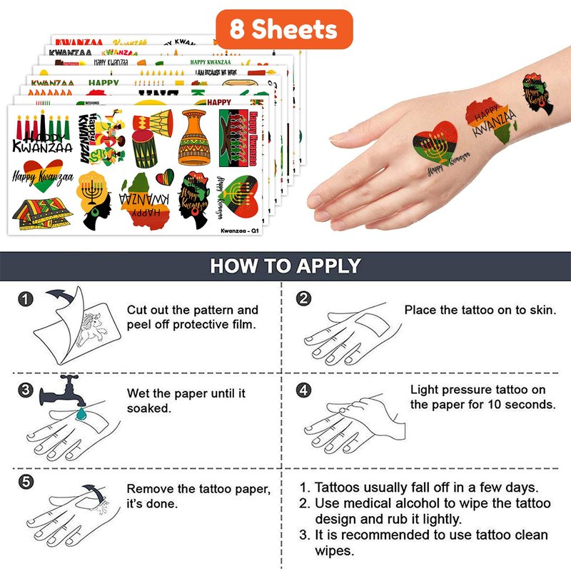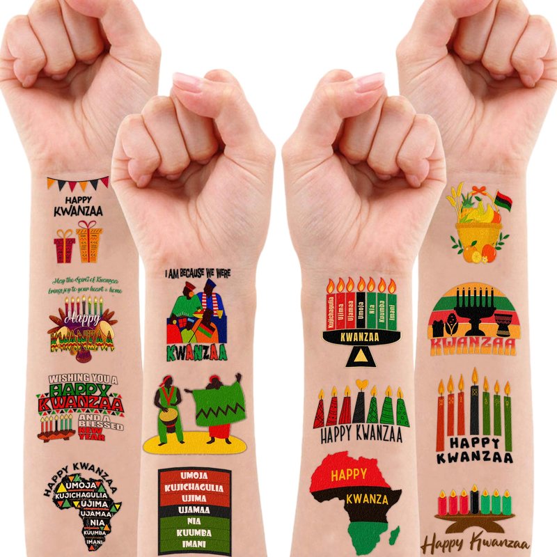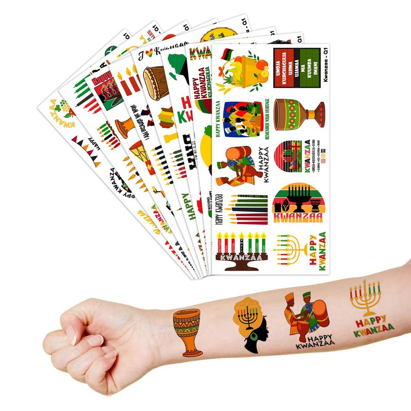 - Cute patterns: Happy Kwanzaa African American Black History Month Africa Temporary tattoo stickers, features an assortment, colors are bright, and designs are adorable, which are attractive to children. Our party favors are based on children's happiness both in appearance and inwardness.