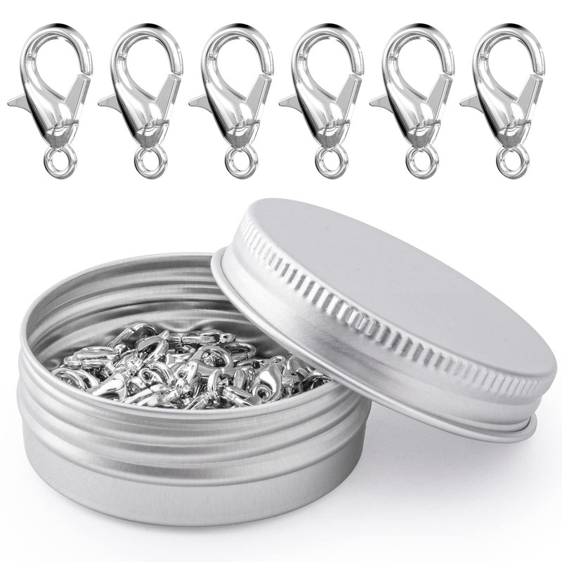 - 5. Package: The lobster clasp pack in the metal box easy to carry, including 100 pcs Lobster Claw Clasps.