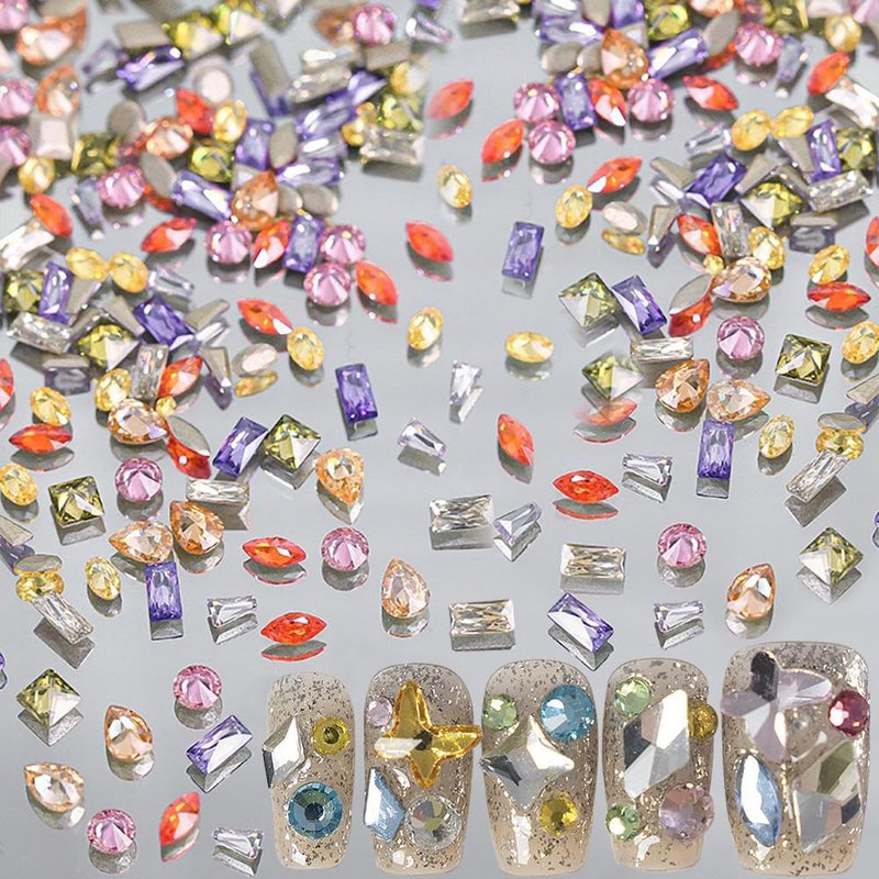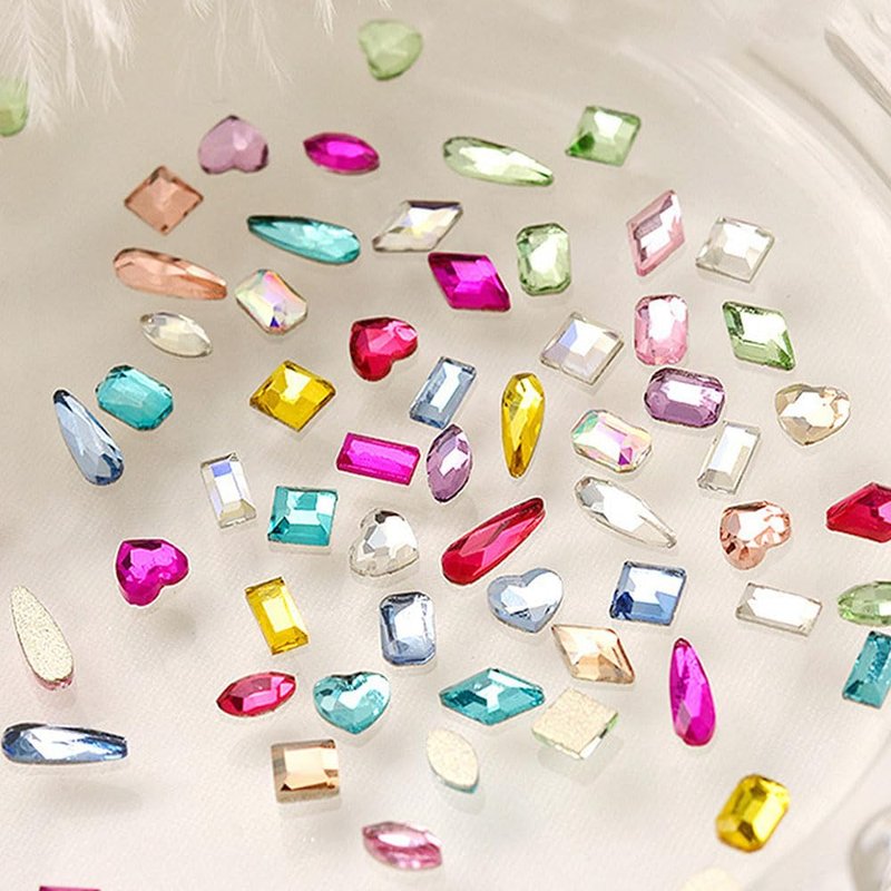 Multi shaped colored nail gems and rhinestones nail accessories can be used together with other nail art