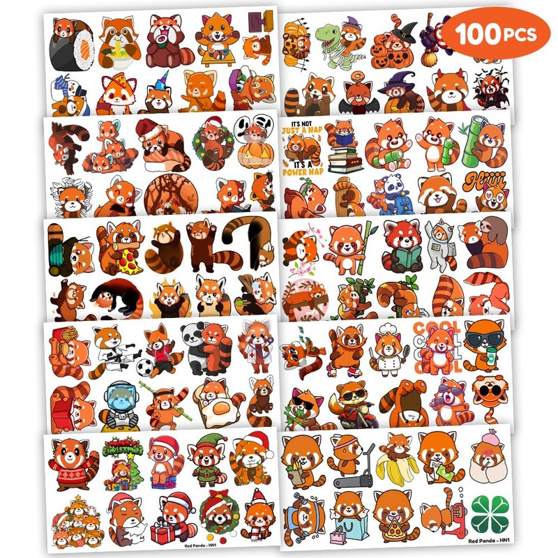 100PCS Red Panda Temporary Tattoos Birthday Party Decorations Favors Supplies Decor Cute Funny Forest Woodland Zoo Jungle Safari Animal Tattoo Stickers Gifts For Kids Boys Girls School Prizes Carnival