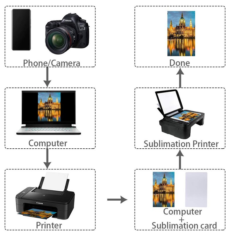 - ★USE: Aluminum business cards are mainly used for sublimation transfer printing or UV printing. You can directly perform thermal transfer printing, follow the instructions
