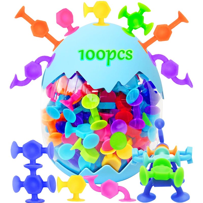 - 🧠【 Suction Cup Toys】 100pcs suction toys with big dino egg storage enough for kids to create more possibilities . Exercise tactility, cultivate motor perception, stimulate color perception, inspire intelligence, and promote growth and development. Not for teething.