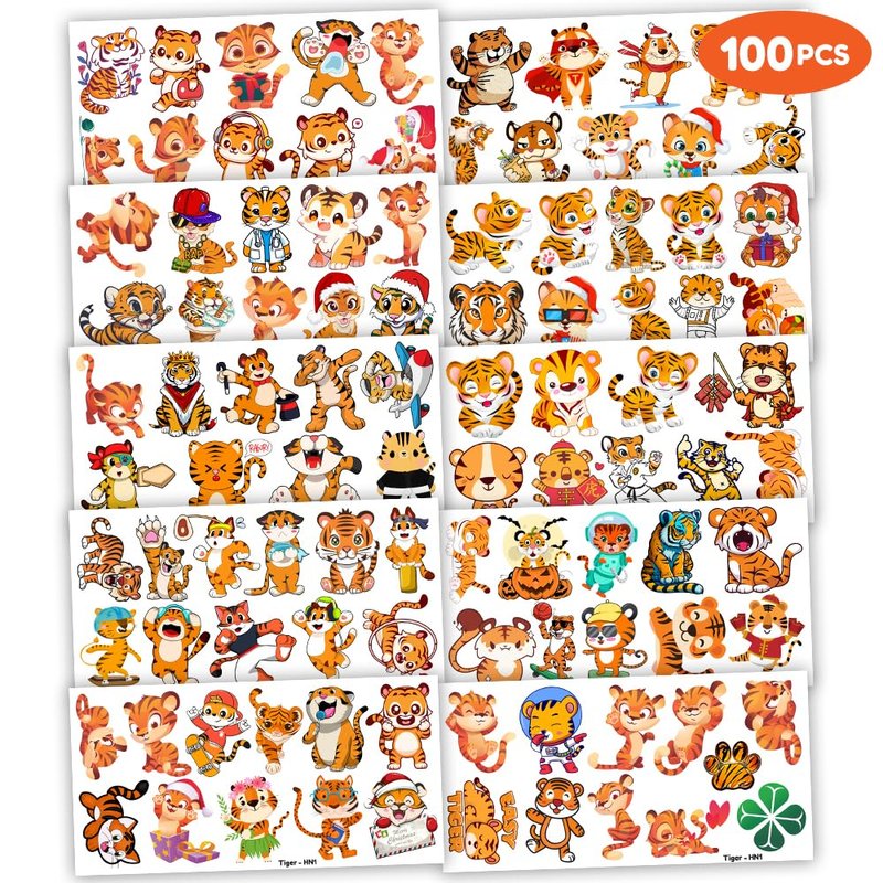 100PCS Tiger Temporary Tattoos Stickers Theme Wild Safari Jungle Zoo Animal Birthday Party Decorations Favors Supplies Cute Tattoo Sticker Gifts For Boys Girls School Prizes Rewards Carnival Christmas
