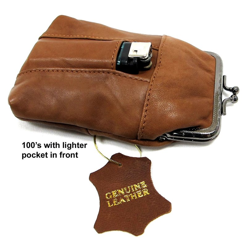 2pc Set HOT PINK + Lt BROWN Genuine Soft Leather Cigarette Case Super Soft and Light Weighted, Fit 100s or smaller pack 1. Snapped Top Closure; 2. Lighter Pockets; 3. Inside full nylon lining; 4. Get 2pc at Price of One; 5. Measure: 5.5" x 4" x 0.5"; Weight 1.5-OZ