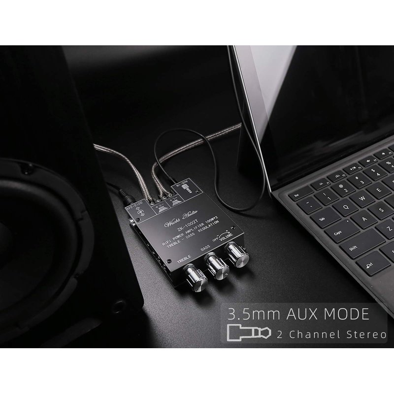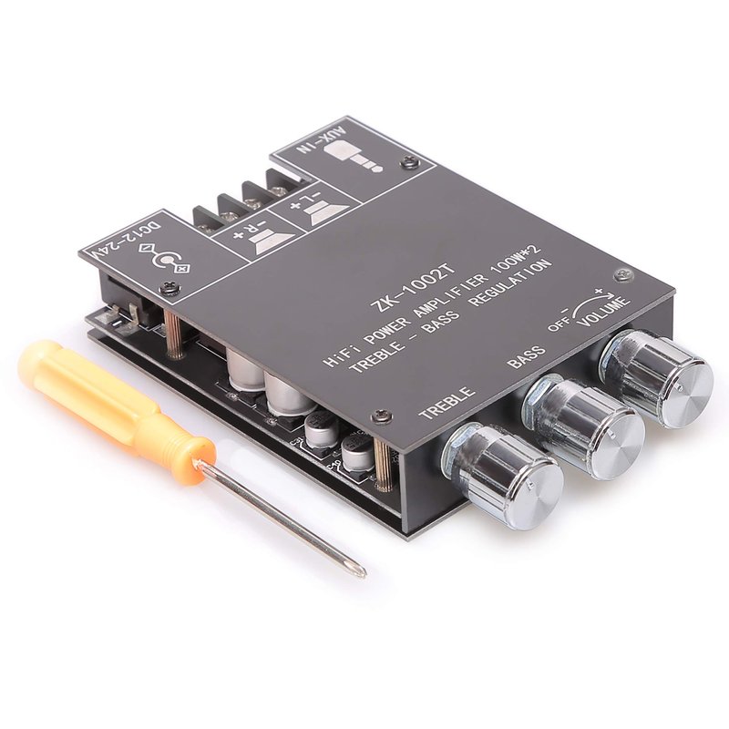 100W+100W Amplifier Board with Treble and Bass Control, DC 9-24V, BT and AUX Inputs, 2.0 Channel Stereo AMP Board for DIY Wireless Speakers, Password Free (ZK-1002T)
