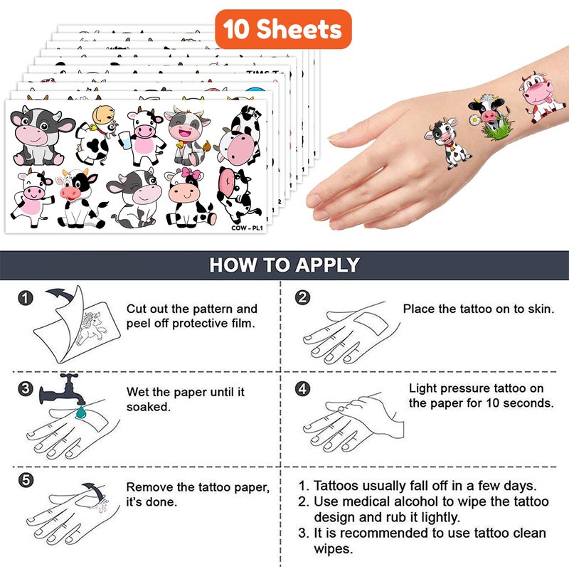 - Widely used: Highland Cow Print Funny Animal Brown Cattle Temporary Tattoos pieces are suitable for many occasions such as birthday party supplies, party decorations, party favors, party bags, DIY decorations, pool and the beach or gift. Temporary tattoos are the best party favors and goodie bags fillers ever for any kind of celebration!