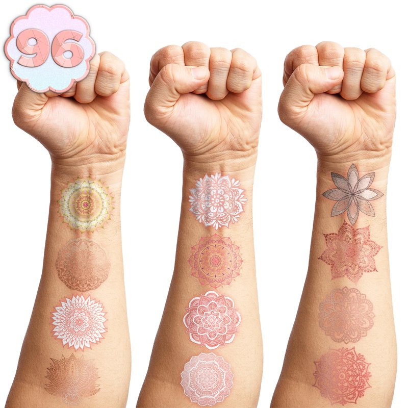 101 PCS Funny Rose Gold Temporary Tattoos Sticker Mandala Pink Rose Gold Birthday Party Decorations Favors Supplies Gifts Ideas Girls Boys Prizes Cute Tattoo School Reward Themed Carnival