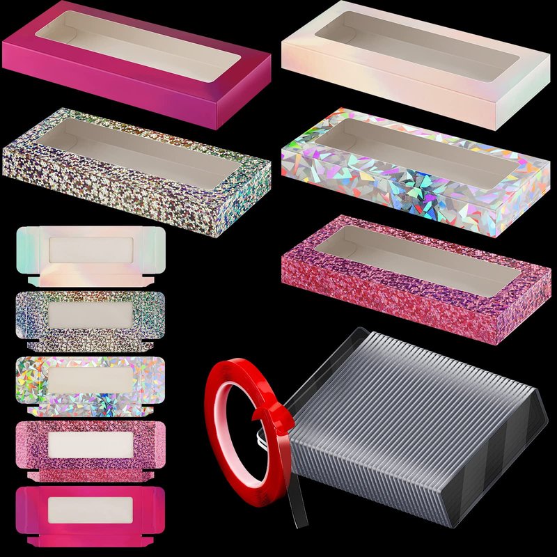 - Considerate Set: the package includes 50 pieces of nail packaging boxes in 5 styles, 10 pieces for each style, featuring laser style, glitter style and more, bright colors for you choose to apply, also contains 50 pieces acrylic nail stand holders and clear double side tape about 5 m/ 16.4 ft long
