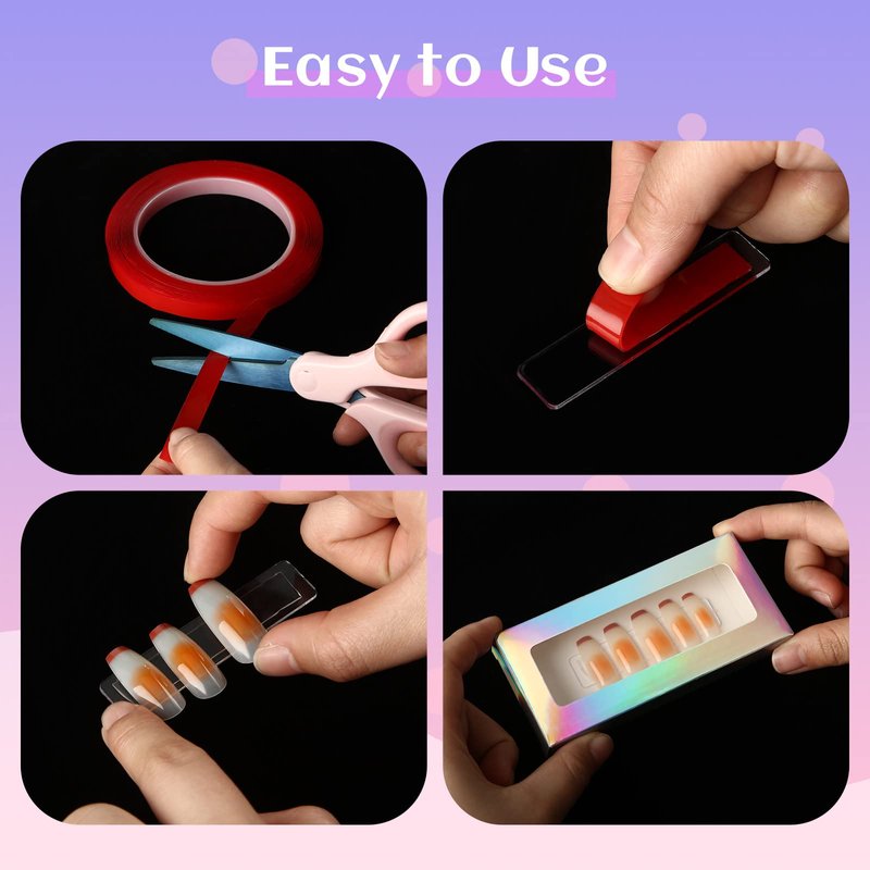 - Waterproof and Reusable: the double sided tape for nails features high transparency and double sided design, adopting acrylic adhesive material, crystal clear, will not affect the appearance of displaying products, easy to peel off from the acrylic stand holder, waterproof, washable and reusable