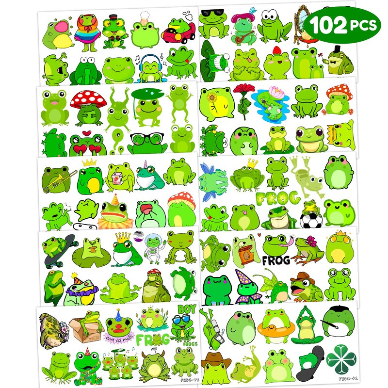 - 🐸FROG PARTY DECORATIONS: Hi everyone! An amazing set of 10 sheets including 102 a size of 6.1 by 3.1 inches. These FROG tattoo pieces will be sent to you quickly, place your order to get these temporary tattoos.