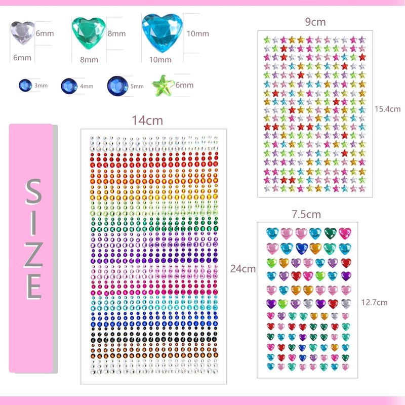 1024PCS Face Hair Gems Self Adhesive Rhinestones for Makeup Eyes Nails Crafting 15 Colors Heart Star Circle Jewels Bling DIY
