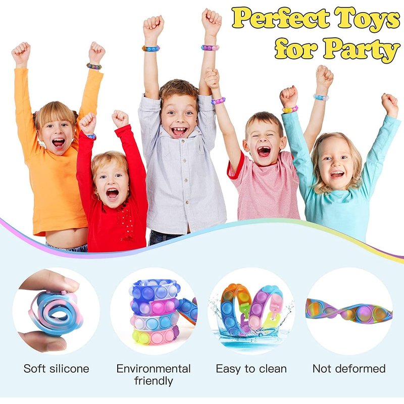 - 【Easy to Carry】These mini its pop bracelet is very light and easy to carry, you can take it on any occasion and at any time, its pressing design brings you fun at any time.Gifts for birthday party favors, stocking stuffers for kids, classroom prizes, Christmas, Thanksgiving as squishy toys squishies autism sensory toys for autistic children.