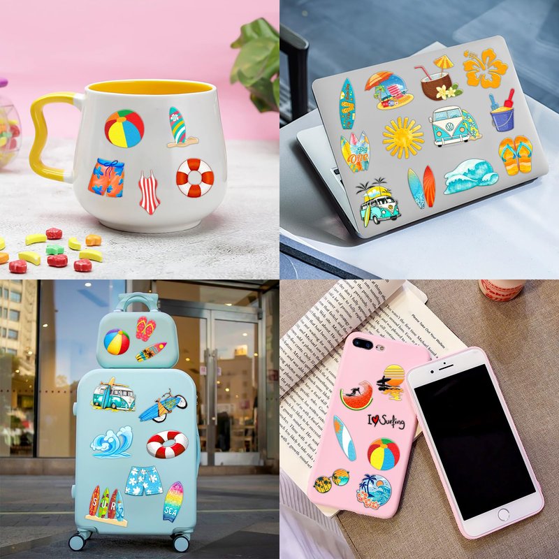 - Cute patterns: Summer Surfing Surf Beach California Hawaiian Ocean Surfer Surfboard Tropical Palm Tree Coconut Temporary tattoos stickers, features an assortment of themed characters, colors are bright, and designs are adorable, which are attractive to children.