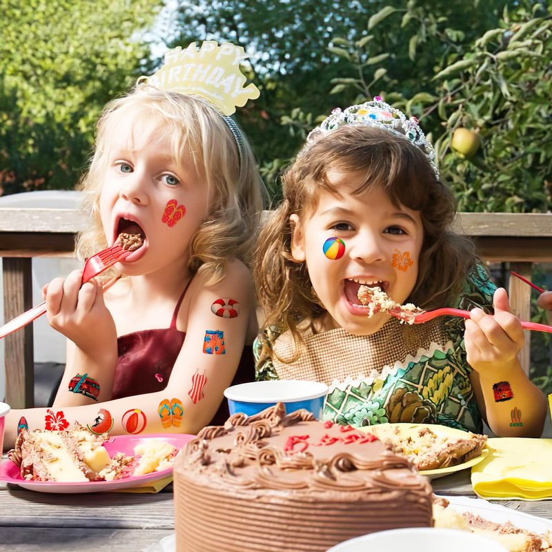 - Various Tattoo Set: Our party favors are based on children's happiness both in appearance and inwardness. Use our party favors can bring joy to your baby, birthday gifts, Christmas sock stuff, family party prize, treasure boxes, Carnival prizes, Classroom rewards, etc. Cute and lively temporary tattoo's element can be used for laptops, backpacks, desks, suitcases, books, water cups and other things you can see everywhere to bring visual enjoyment.