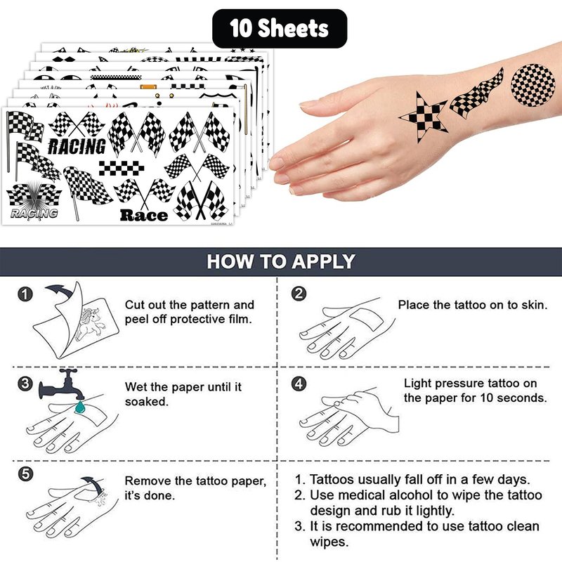 - π [PERFECT TATTOOS FOR CHECKERED -THEMED DECORATION] : CHECKERED tattoos for people who love the checkered. Featuring 10 sheets with 104 pcs of lovely, fun and colorful design. Each sheet measures 6.1 * 3.1 inches. You can temporarily tattoo them on your body or objects such as phones, bottles, laptopβ¦