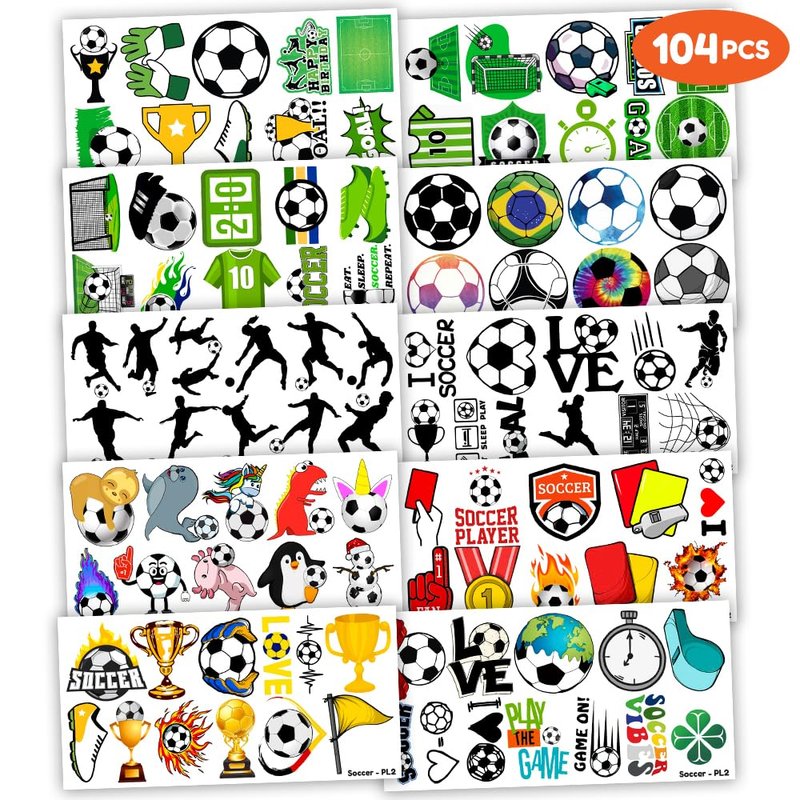 104 PCS Soccer Ball Temporary Tattoos Themed Birthday Party Decorations Favors Supplies Decor Funny Football Sports Player Tattoo Stickers Gifts For Game Boys Girls Class School Prizes Carnival