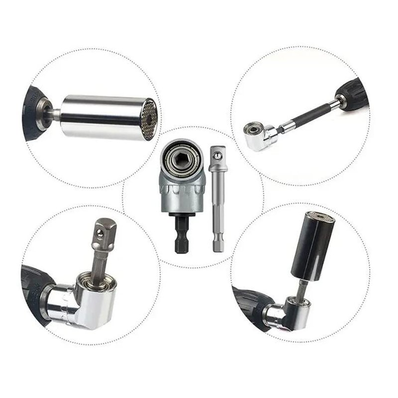 - 【Package Included】: 1 x 105° Angle 1/4" Extension Hex Drill Bit Screwdriver Socket Holder Adaptor,Turning head screwdriver.