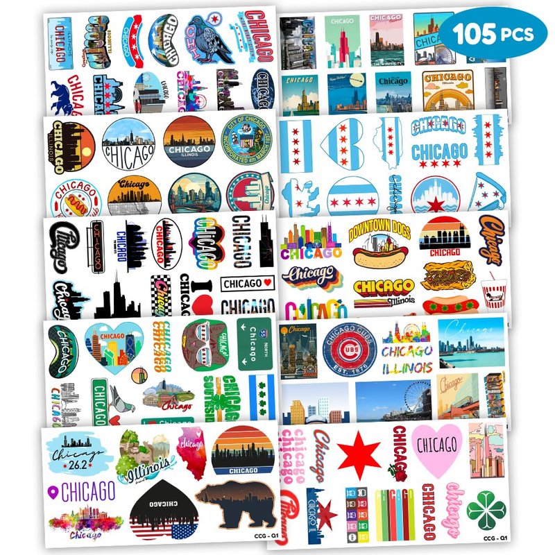 105 PCS Chicago City Skyline Flag Stickers Temporary Tattoos Stickers Birthday Party Decorations Supplies Favors Decor Cute Illinois Tattoo Sticker Gifts for Kids Boys Girls School Prizes Carnival