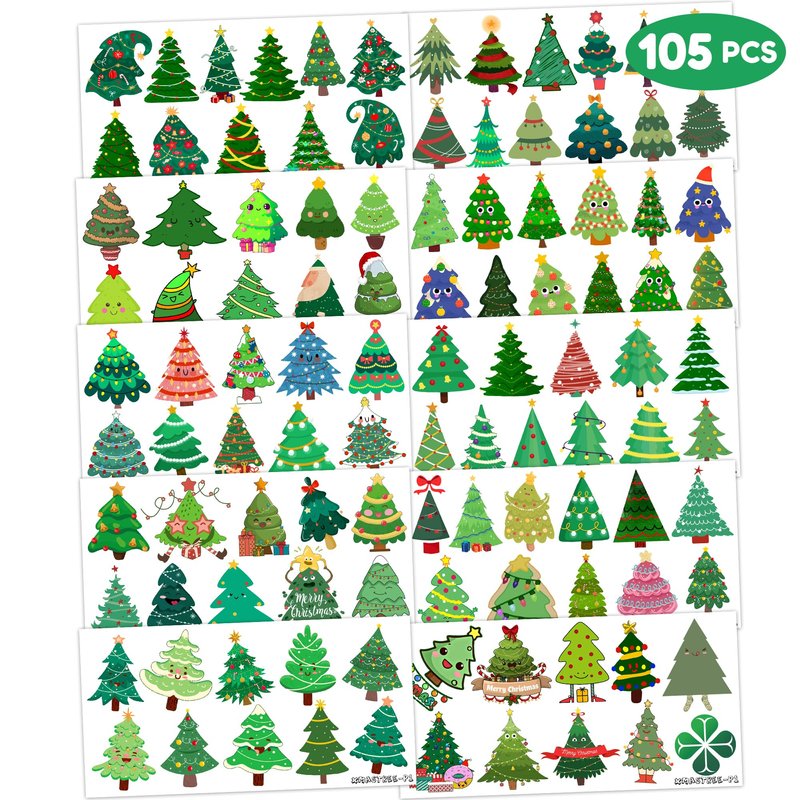 105 PCS Christmas Tree Temporary Tattoos Birthday Party Decorations Supplies Favors Mini Green Merry Xmas Tree Cute Decor Tattoo Stickers Gifts for Game Boys Girls Classroom School Prizes Reward
