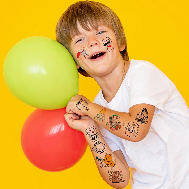 - 🧻 FUN GIFT IDEAS FOR TOILET PAPER BIRTHDAY PARTY DECORATIONS SUPPLIES: TOILET PAPER perfect for themed party, outdoor parties, birthday parties, school rewards and other party events. TOILET PAPER TATTOOS are also interesting and lovely gifts for your children. Complement your unique collection with a TOILET PAPER tattoo!