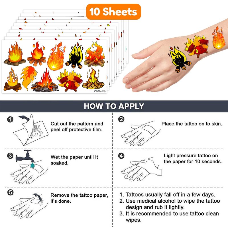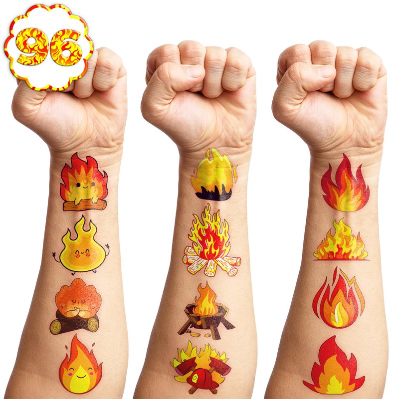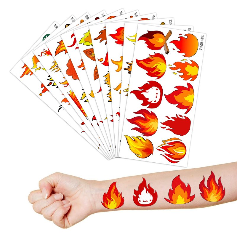 - ❤️FIRE PARTY FAVOR: Our transient FIRE tattoos will add a festive touch to any gathering. Select from striking fire motifs, such as campfires, firefighters, and flames. To add a unique touch to your party, order these fire tattoos right away.
