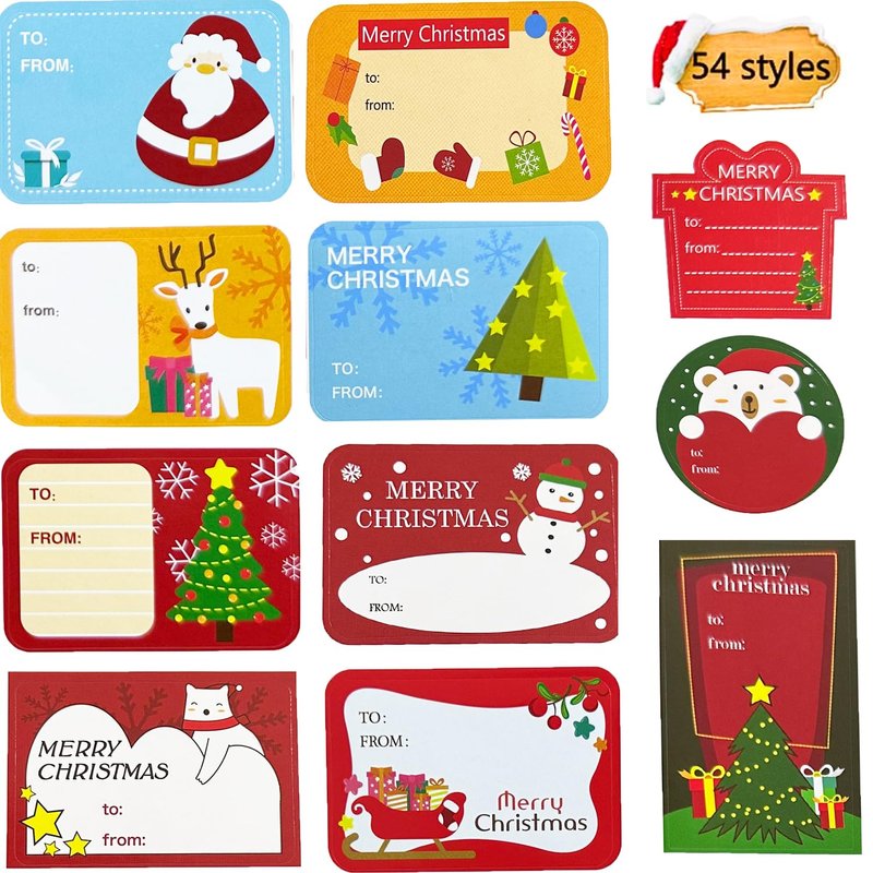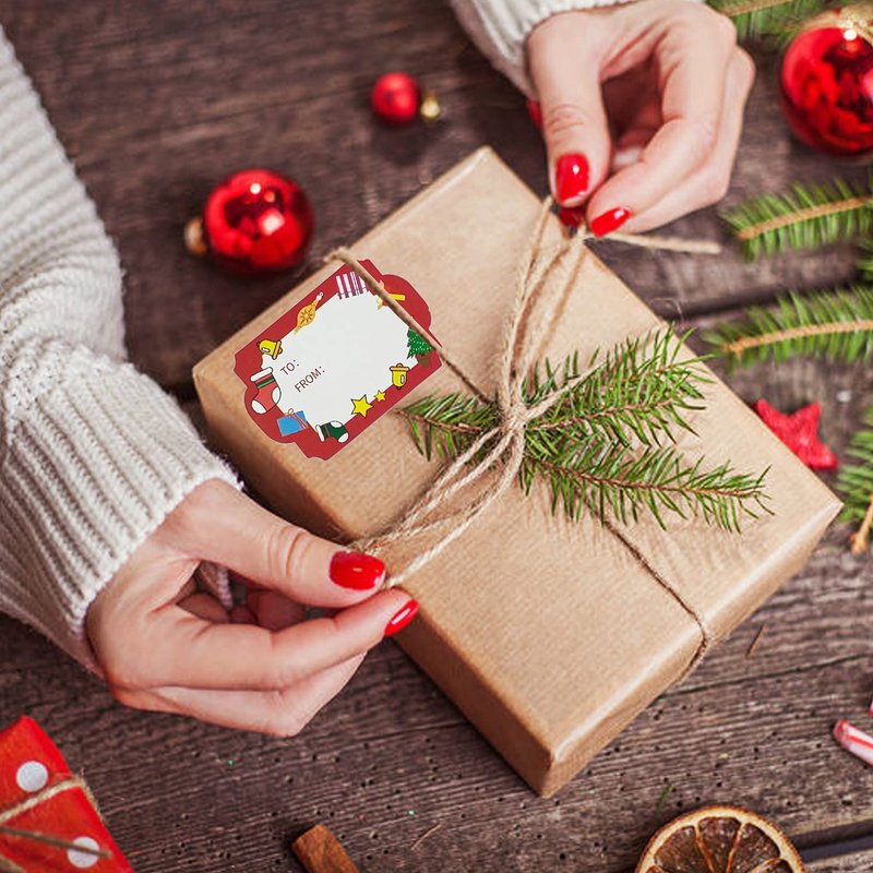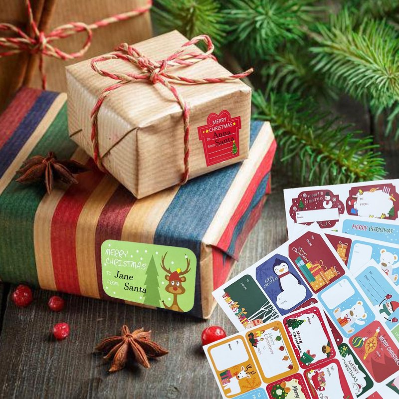 - 【High Quality Material】 The Christmas labels stickers are printed with environmentally friendly materials, hard-wearing, durable and waterproof. It is a kind of thin adhesive sticker.
