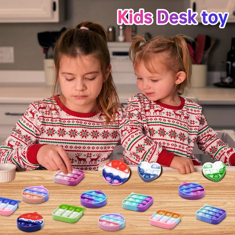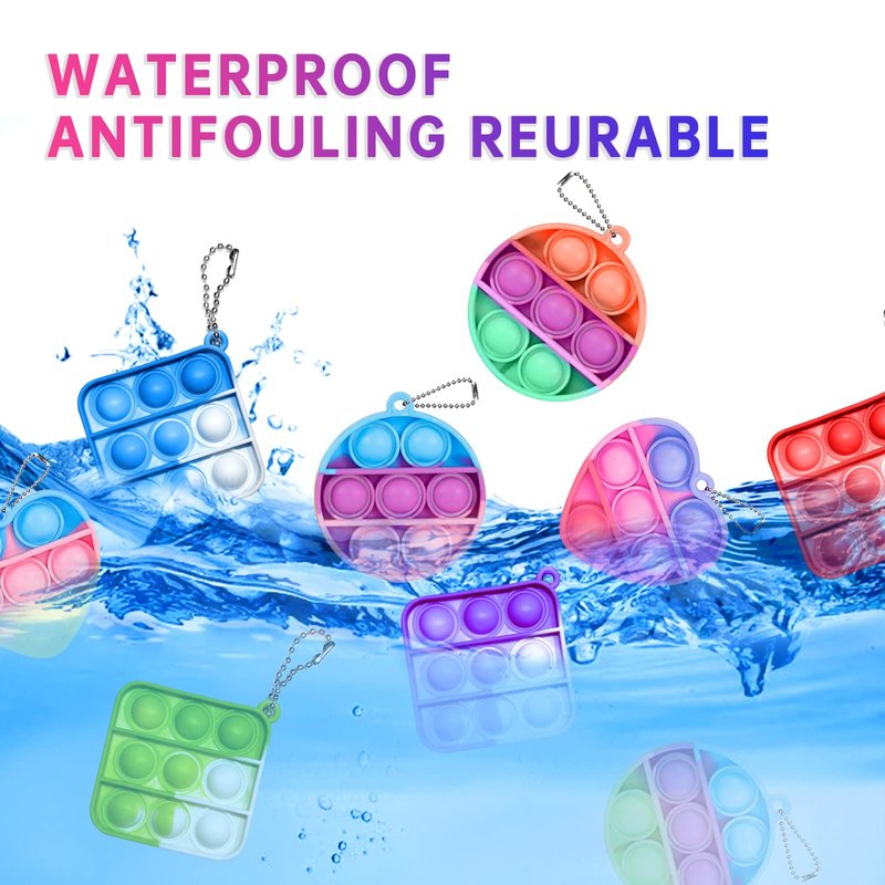 - [MINI FIDGETS EFFECTIVELY RELIEVE STRESS]: Our pop keychain toy will soothe your soul and make you feel calm quickly. Effectively relieve your stress and anxiety from working and studying for a long time. It can also be an effective ADD, ADHD, OCD toy to help kids relax and concentrate, stressed and nervous. But also improve children's calculation, thinking, hands-on ability This multi-purpose silicone squeeze toy is the perfect game for parents, the elderly, children and adults.