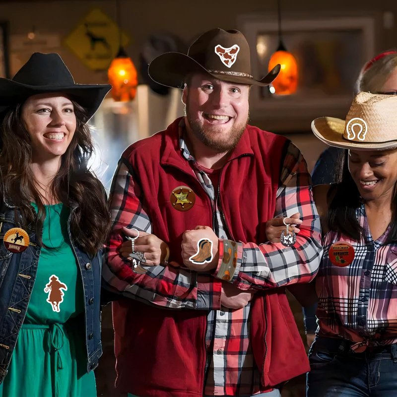- Quality Materials: These western party slap bracelets are made of PVC material with sealed edges, not easy to break. Our western cowboy key rings are made of PVC material and stainless steel, reliable and wear resistant; The western cowboy stickers are made of waterproof PVC material, not easy to fade or tear, western cowboy button badges are made of plastic, plenty of styles to impress party goers