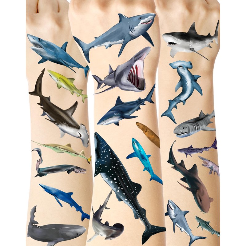 Quantity: 16 sheets Shark Decor temporary tattoos