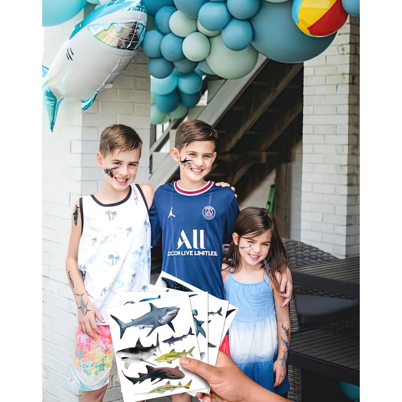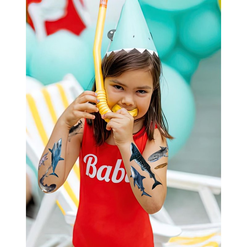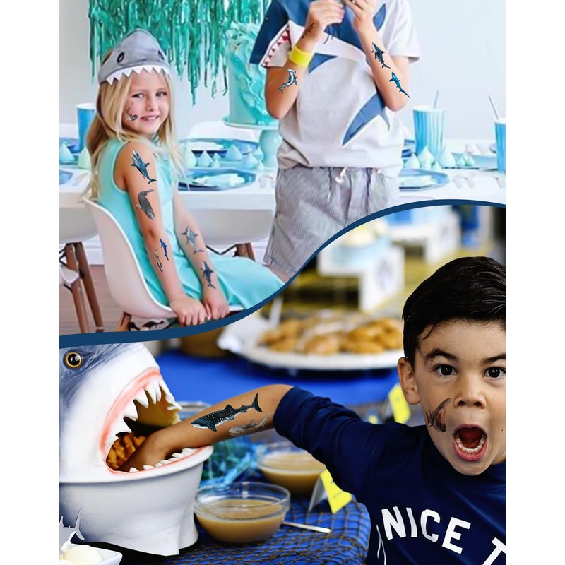 - Friendly to Skin Shark party decorations,our temporary tattoos have been put through rigorous party testing and are 100% guaranteed to last all day,Non-toxic, harmless and tasteless, the tattoos do not cause irritation