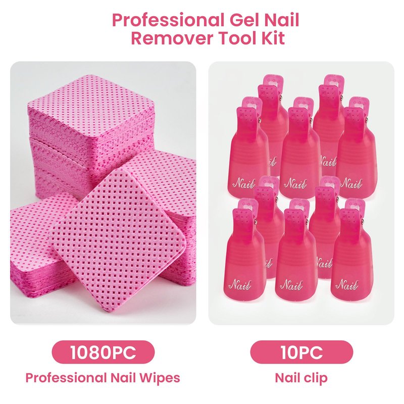 - What You'll G: With your purchase, you'll receive a generous quantity of 1080 nail wipes, perfect for all your nail care needs. Additionally, we've included 10 nail clips, which are an essential tool for manicures. Our complimentary nail soak off clips are incredibly durable and will easily withstand regular use, making them the perfect addition to your nail care kit