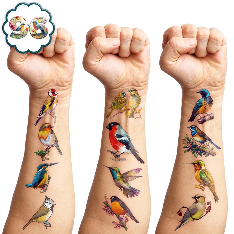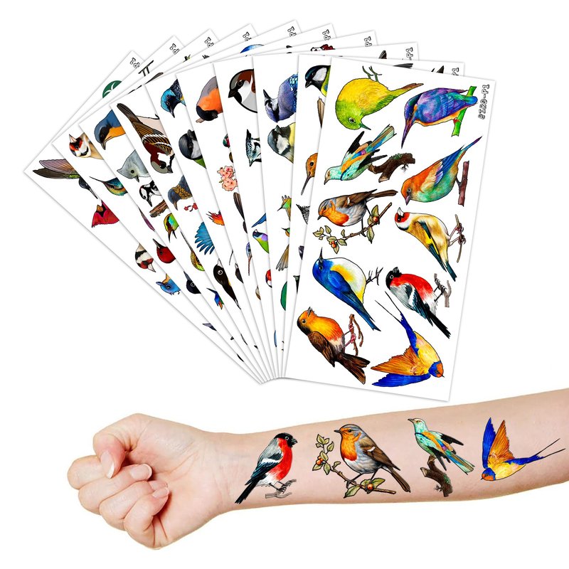 - 🐤BIRD PARTY FAVOR: Any celebration will be spiced up with our temporary BIRD tattoos. Choose from eye-catching motifs for your event, such as charming, summer hawaiian colorful birds. So, order our bird tattoos now to give your party a special touch.