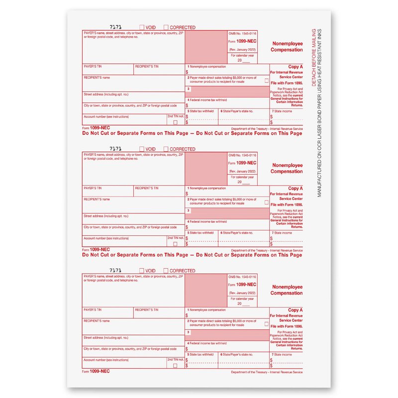 - 27 1099 NEC Copy A Forms for Federal (9 sheets, 3 forms per sheet)