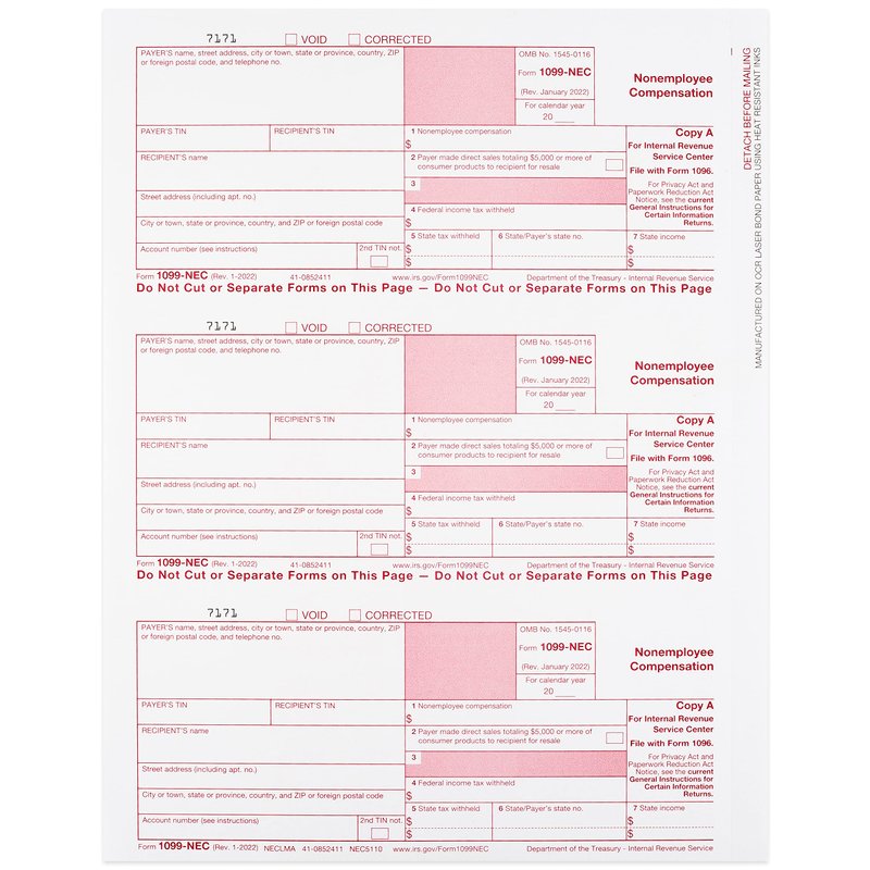 All of these tax forms are suitable for a 3-part 1099-NEC informational tax return filing of 50 recipients.