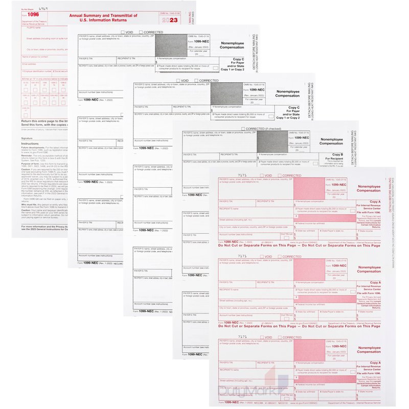 - THIS 2023 1099 NEC TAX Forms KIT INCLUDES 17 Federal Copy A sheets, 17 recipient Copy B sheets with perforation, 17 State or payer copy C/copy 2 sheets with perforation, and 3 1096 transmittal form sheets
