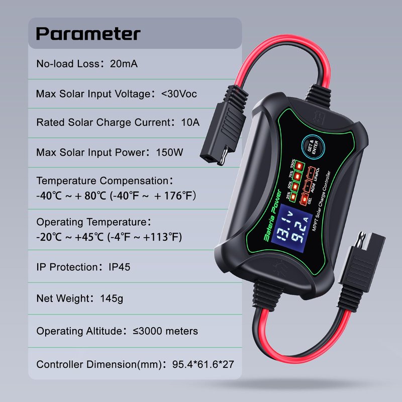 - Style: 30Volts, MPPT 10Amp