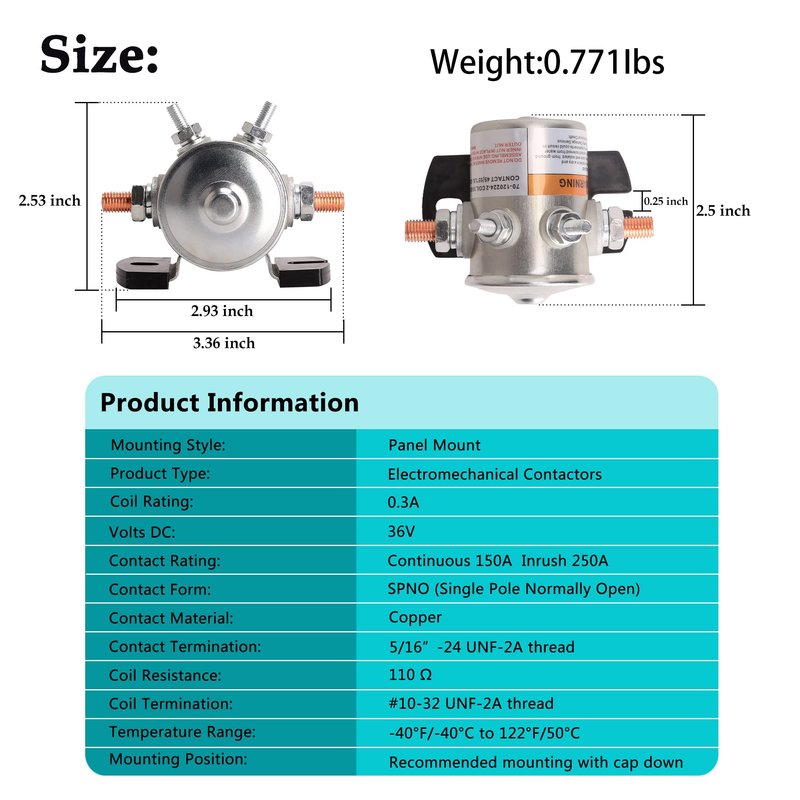 36V Solenoid Relay, DC power contactor, Continuous Duty