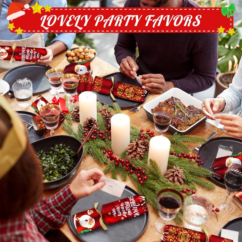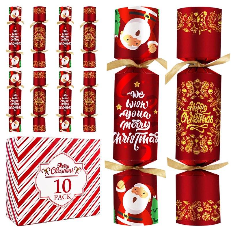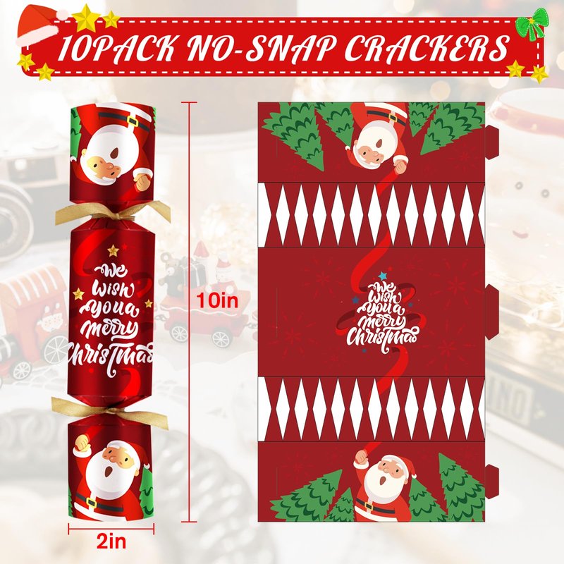 10PACK Christmas Party Favor 10‘’ No-Snap Table Favors with Prize Joke Gifts for Adults Kids Party Supplies Dinner Decorations British English Holiday Games Red