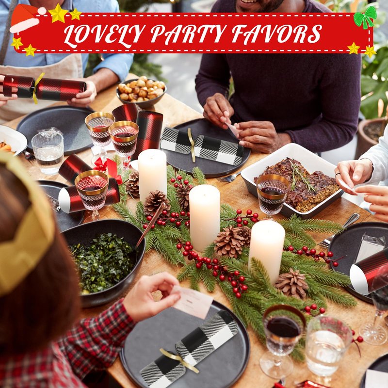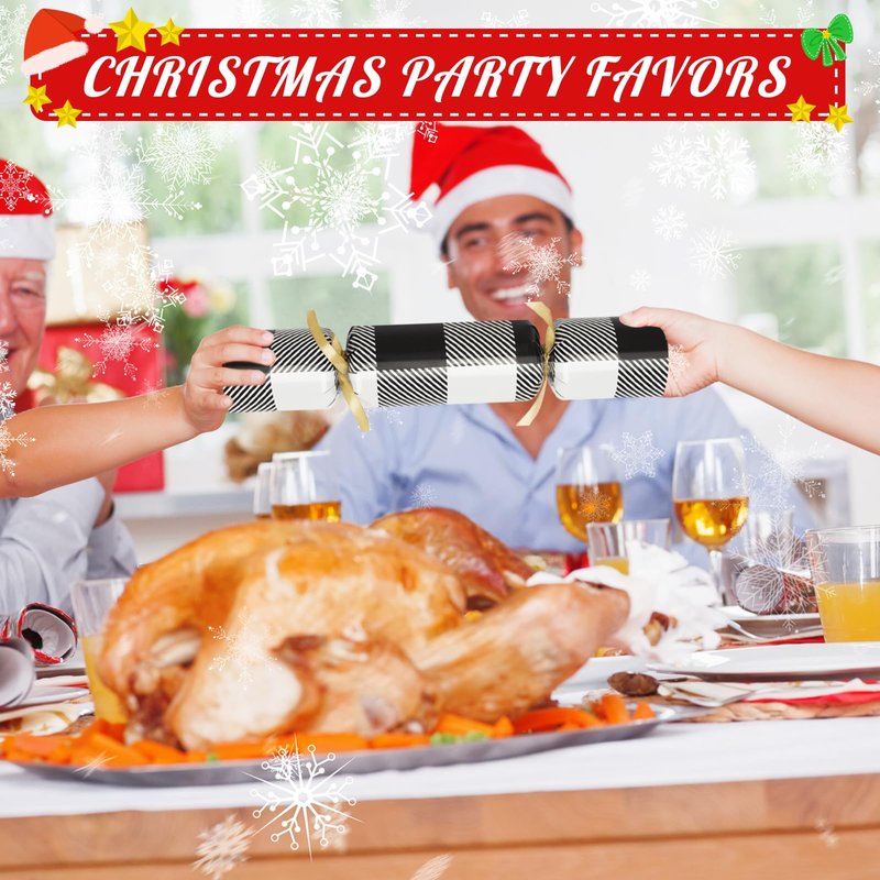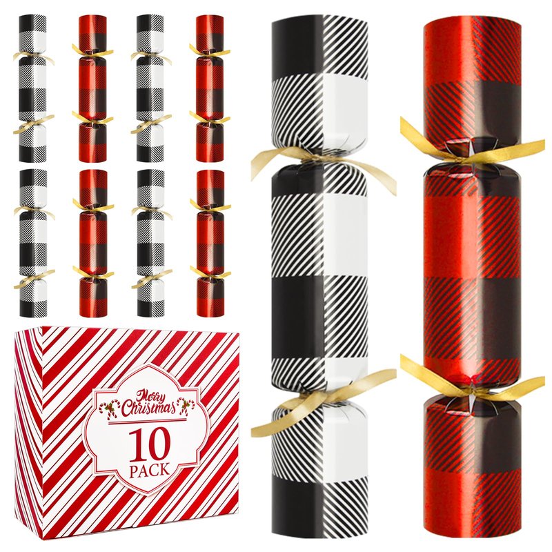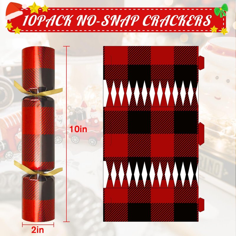 10PACK Christmas Party Favor 10‘’ No-Snap Table Favors with Prize Joke Gifts for Adults Kids Party Supplies Dinner Decorations British English Holiday Games Red Black White Buffalo