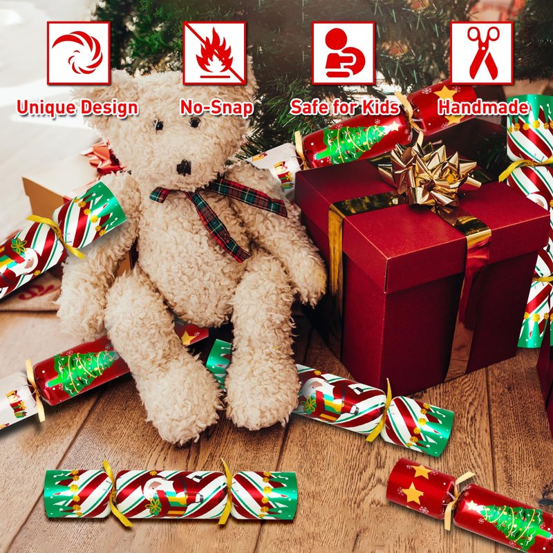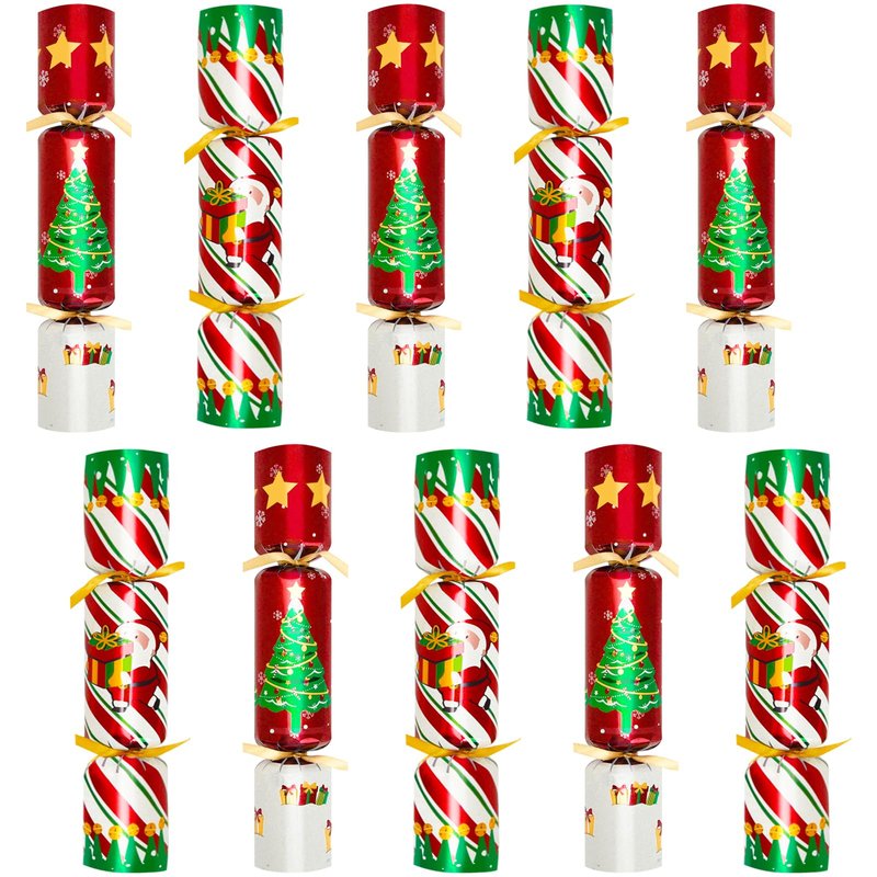 10PACK Christmas Party Favor 10‘’ No-Snap Table Favors with Prize Joke Gifts for Adults Kids Party Supplies Dinner Decorations British English Holiday Games Christmas Tree Pattern