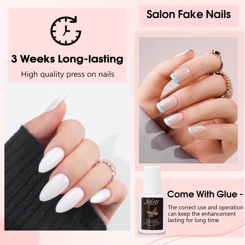 - 【👐Fake Nails as a Perfect Gift】This short nails press ons nails set of products includes short square french tips nails , which can meet your nail art needs in different occasions in your life. Such as weddings, prom, dating and many other social occasions, also suitable for Valentine's Day, Halloween, Christmas and other festivals. False nails that stick to nails are the perfect gift for girlfriends, wives, women and girls.