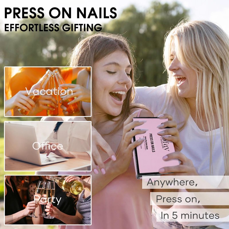- 【💅 MADE BY GEL】 - Made with gel polish, our press on nails are gentle on your nail beds and feel like real nails. They fit the nail bed perfectly with a seamless cuticle line
