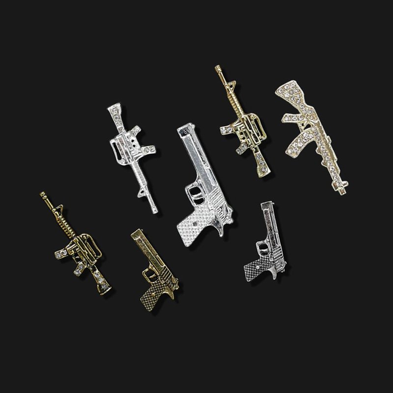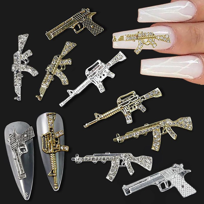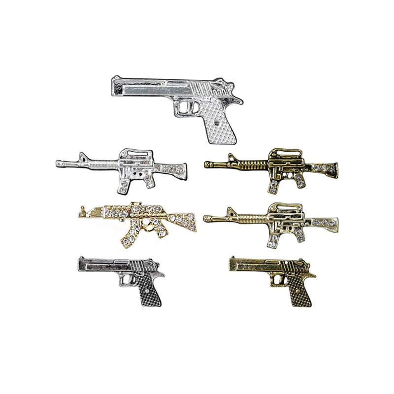 - Alloy Rhinestone Nail Decoration: Gun Shape Nail Art Charms are made of zinc alloy material, which is strong, durable, colorfast and non-deforming, our high quality metal gun shaped charms can be reused for a long time.