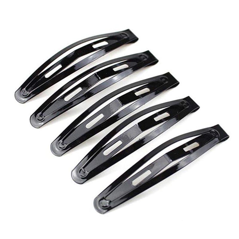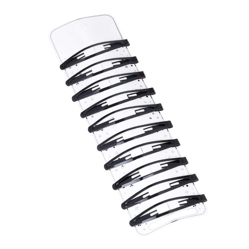 10pcs 6cm Black Snap Hair Clips Simple Oval Metal Barrettes for Girls