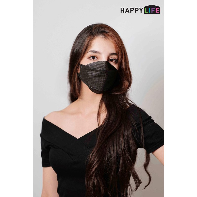 (10PCS) Black Disposable KF94- Face Mask, 4-Layer Filters Breathable Comfortable Nose, Good Day, Dust Mask, Black KF94 Masks Made in Korea.